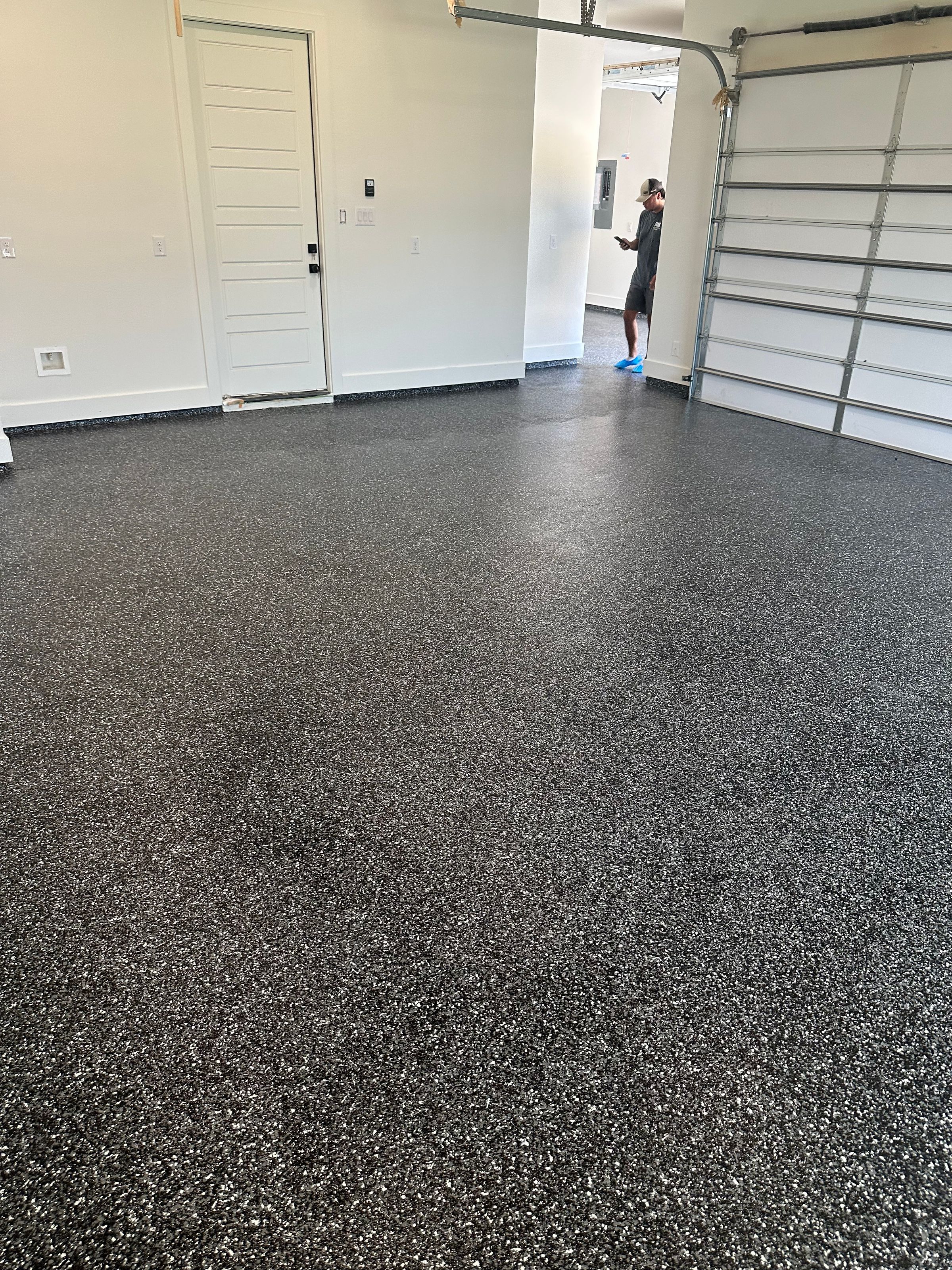 We follow a multi-step system to ensure your floor lasts. Concrete Grinding & Prep We diamond-grind every floor for maximum adhesion. Crack & Damage Repair We fill cracks, pits, and surface defects for a flawless finish. Primer Coat Helps absorb and seal the concrete surface. Epoxy Application Choose your style: flakes, metallic waves, mixed colors, quartz, etc. Broadcasting or Design Work We apply flakes, metallic effects, or custom art. Durable Polyaspartic Topcoat UV-resistant, glossy, and built to last.